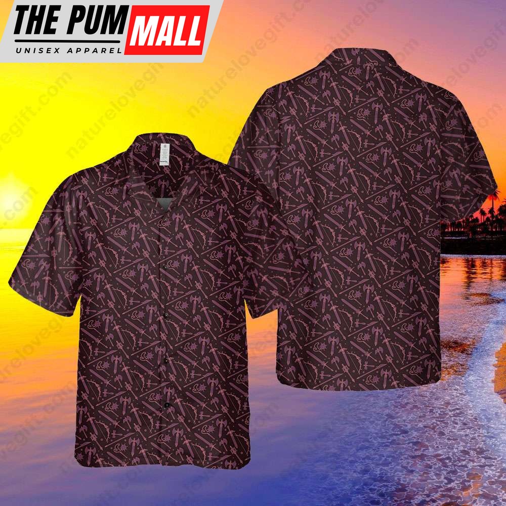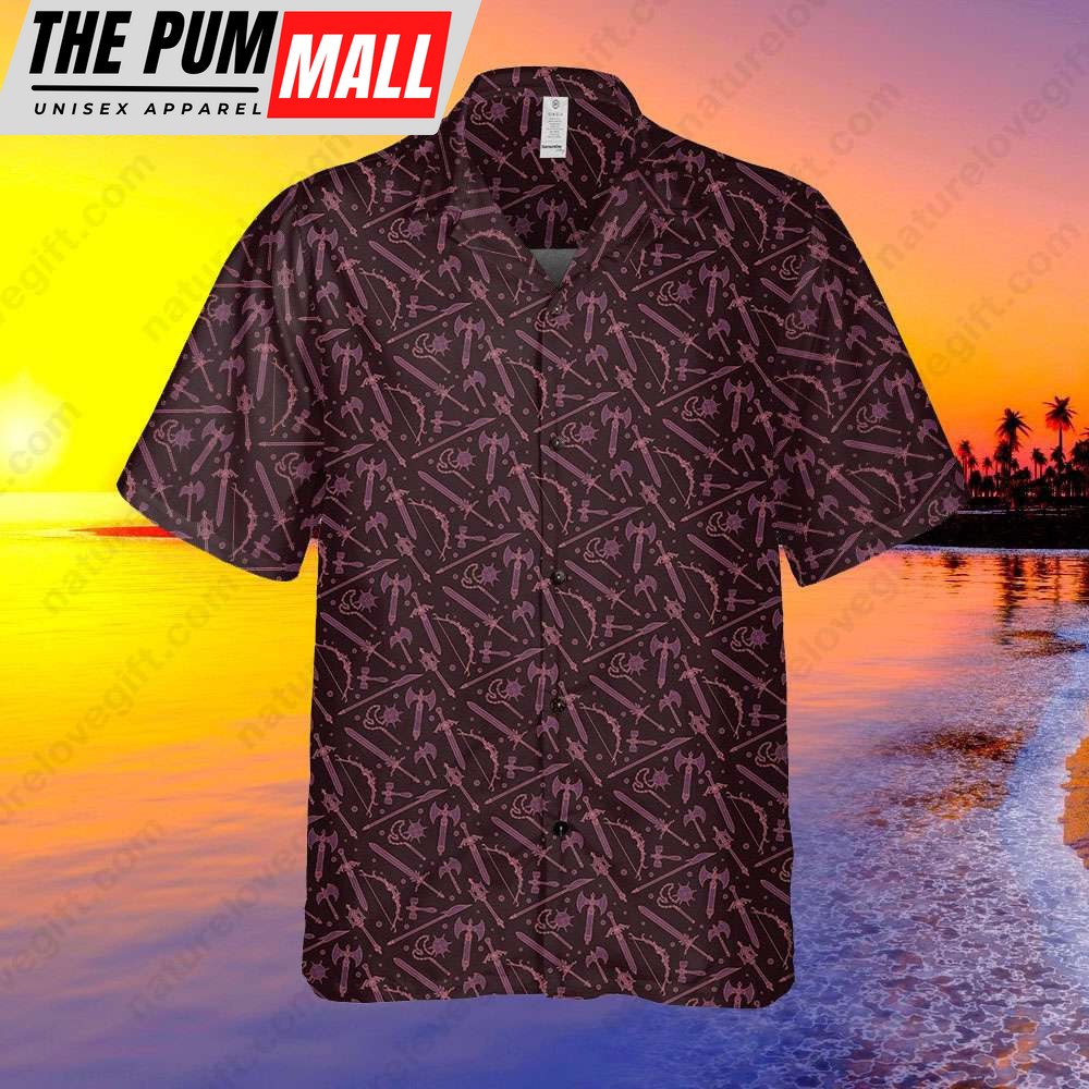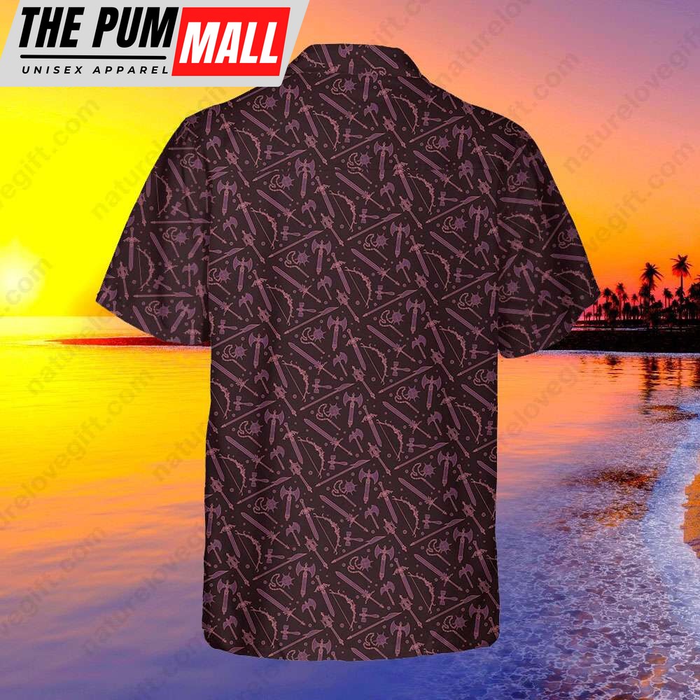 Medieval Weapons Button Up Hawaiian Shirt DnD Dungeons and Dragons Gift