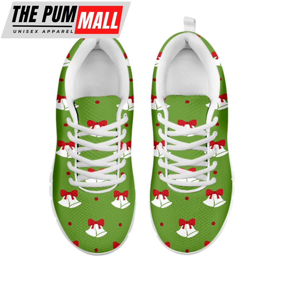 Merry Christmas Bells Pattern Print White Running Shoes, Gift For Men And Women