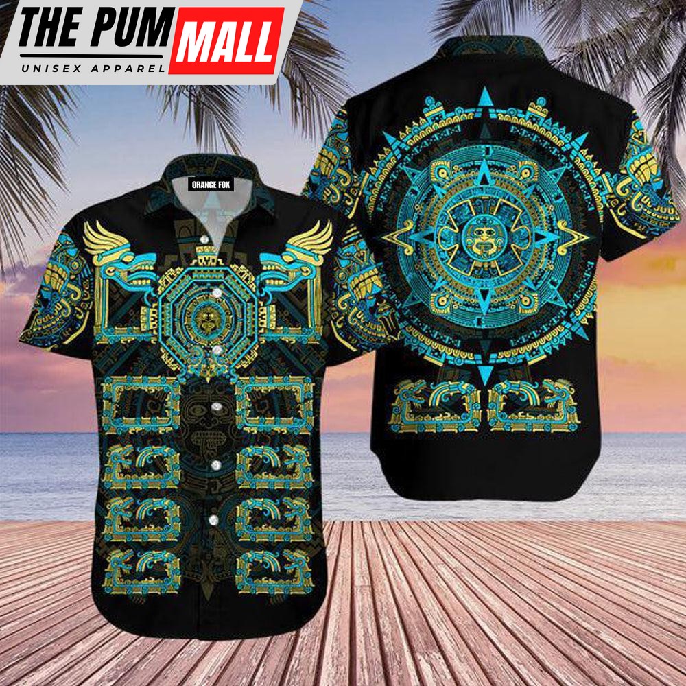 Mexican Hawaiian Shirt, Aztec Mexico Quetzalcoatl Black Hawaiian Shirt