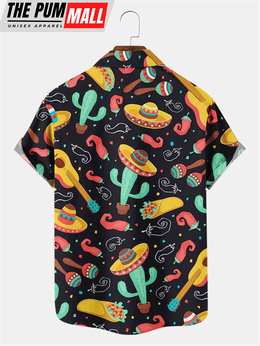 Mexican Hawaiian Shirt, Cinco De Mayo Cactus Guitar and Peppers Hawaiian Shirt