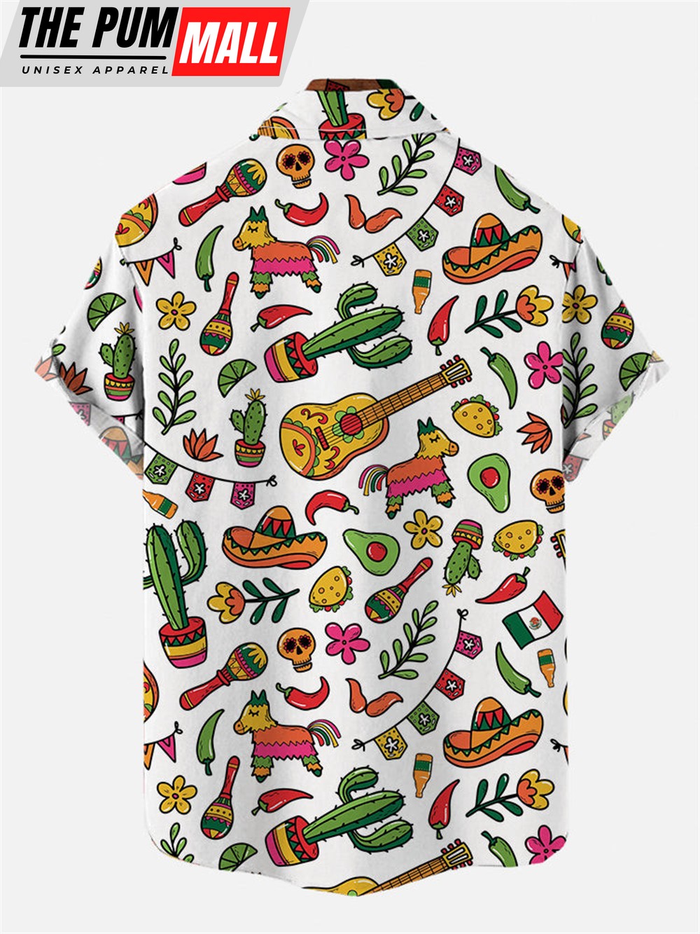 Mexican Hawaiian Shirt, Cinco De Mayo Cartoon Mexican Elements And People In Mexican Costumes Printing Breast Hawaiian Shirt