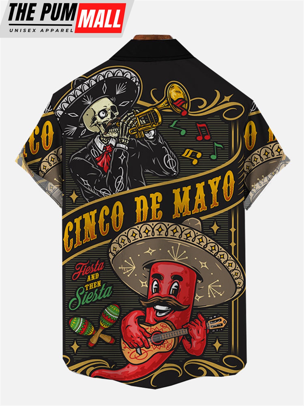 Mexican Hawaiian Shirt, Cinco de Mayo Cartoon Mexican Style Chili Pepper And Mexican Maracas Hawaiian Shirt