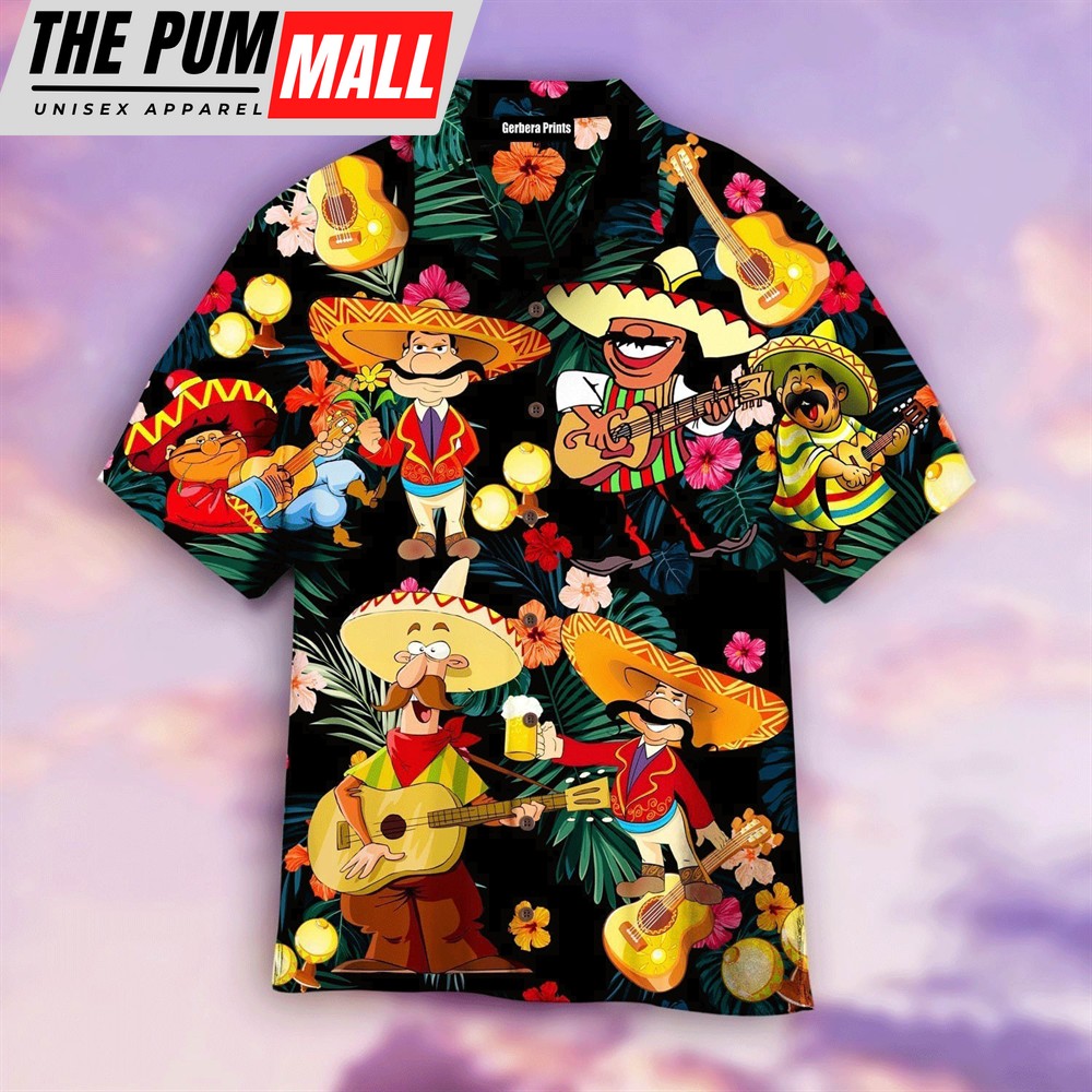 Mexican Hawaiian Shirt, Funny Mexican Man Cinco De Mayo Floral Pattern Black Hawaiian Shirt