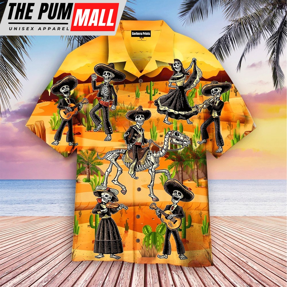 Mexican Hawaiian Shirt, Funny Mexican Skull Dancing In The Desert Hawaiian Shirt