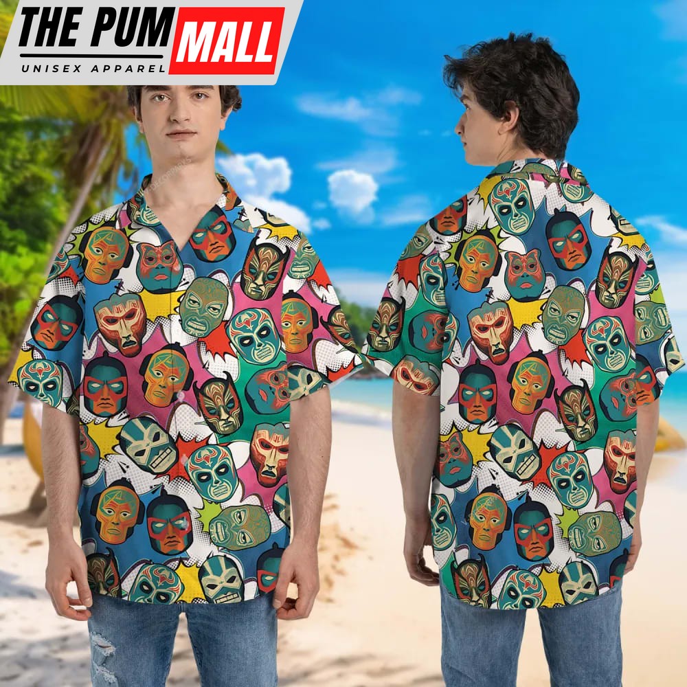 Mexican Hawaiian Shirt, Huichol Art Lucha Libre Unisex Hawaiian Shirt