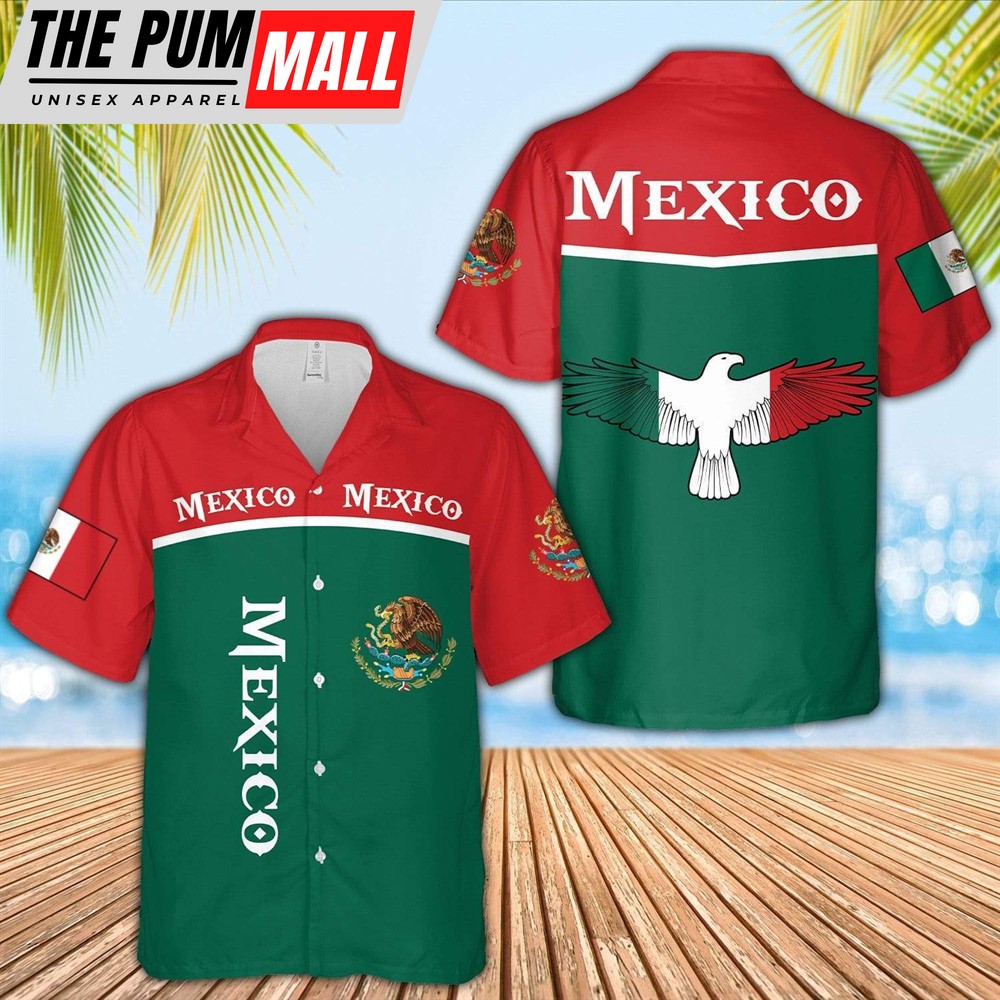Mexican Hawaiian Shirt, Mexico Root Green Red Flag Color Unisex Hawaiian Shirts