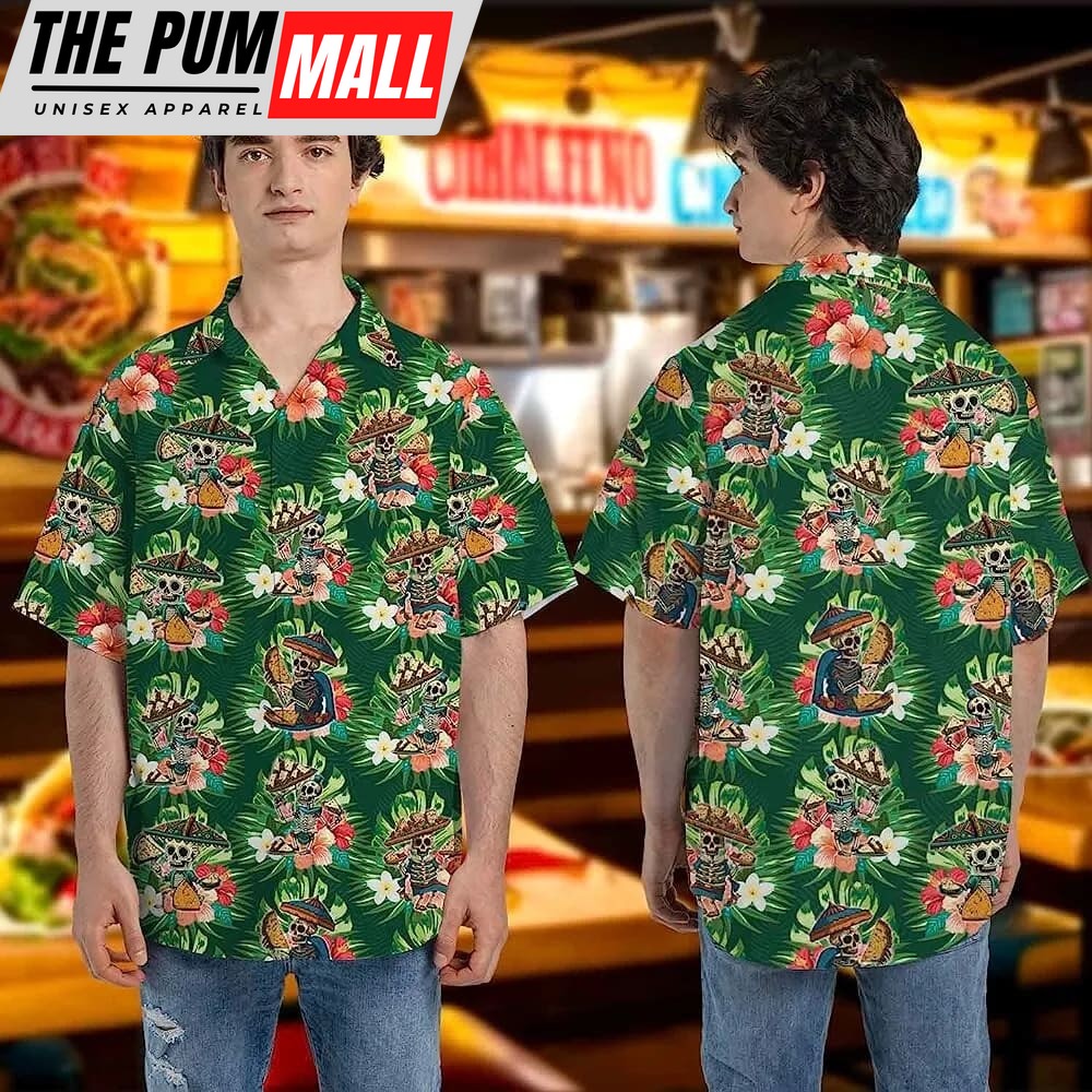 Mexican Hawaiian Shirt, Mexico Skeleton And Taco Tropical Pattern Hawaiian Shirt For Men Women