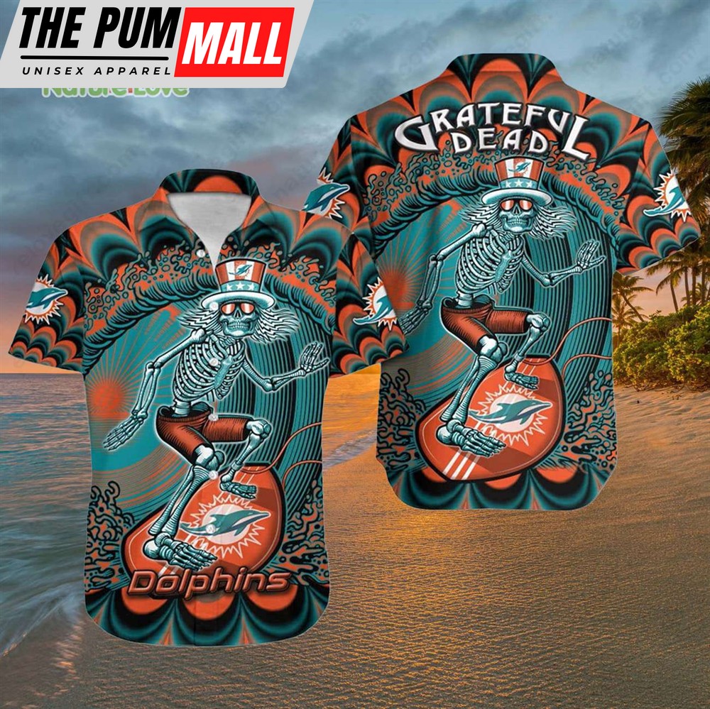 Miami Dolphins Grateful Dead Surfing Dolphins Hawaiian Shirt