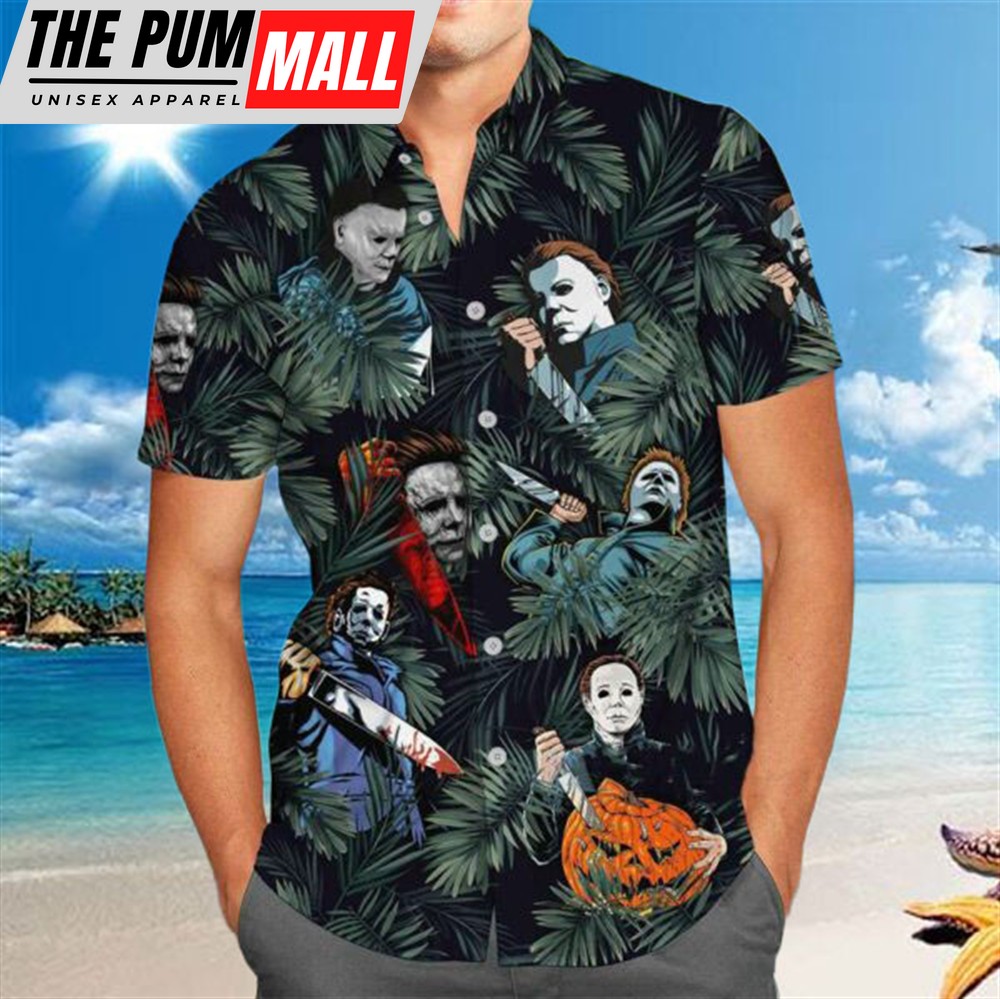 Michael Myers with Knife Pumpkin Tropical Horror Hawaiian Shirt