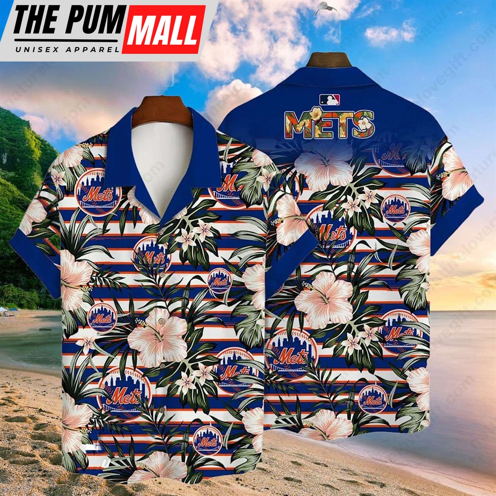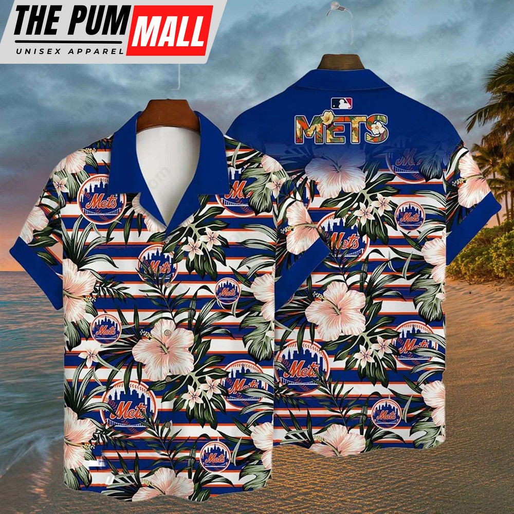 New York Mets Hibiscus Tropical Flowers Stripe MLB Hawaiian Shirt