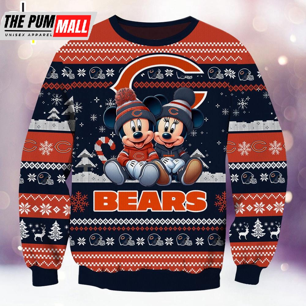NFL Chicago Bears Mickey And Minnie Cute Christmas Ugly Sweater