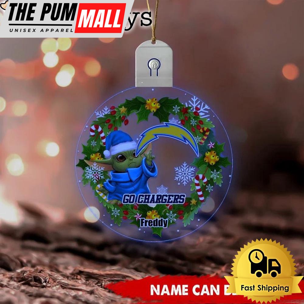 NFL Los Angeles Chargers Baby Yoda Custom Circle Led Acrylic Ornament Limited Edition. Add a warm and meaningful touch to your holiday season with a personalized Christmas tree ornament crafted uniquely for your family. Perfect for those looking for unique, custom Christmas decorations, each ornament is beautifully designed to feature names, dates, or heartfelt messages. This custom ornament is more than just decor; it’s a symbol of joyful memories, love, hope, and the promise of a bright future.