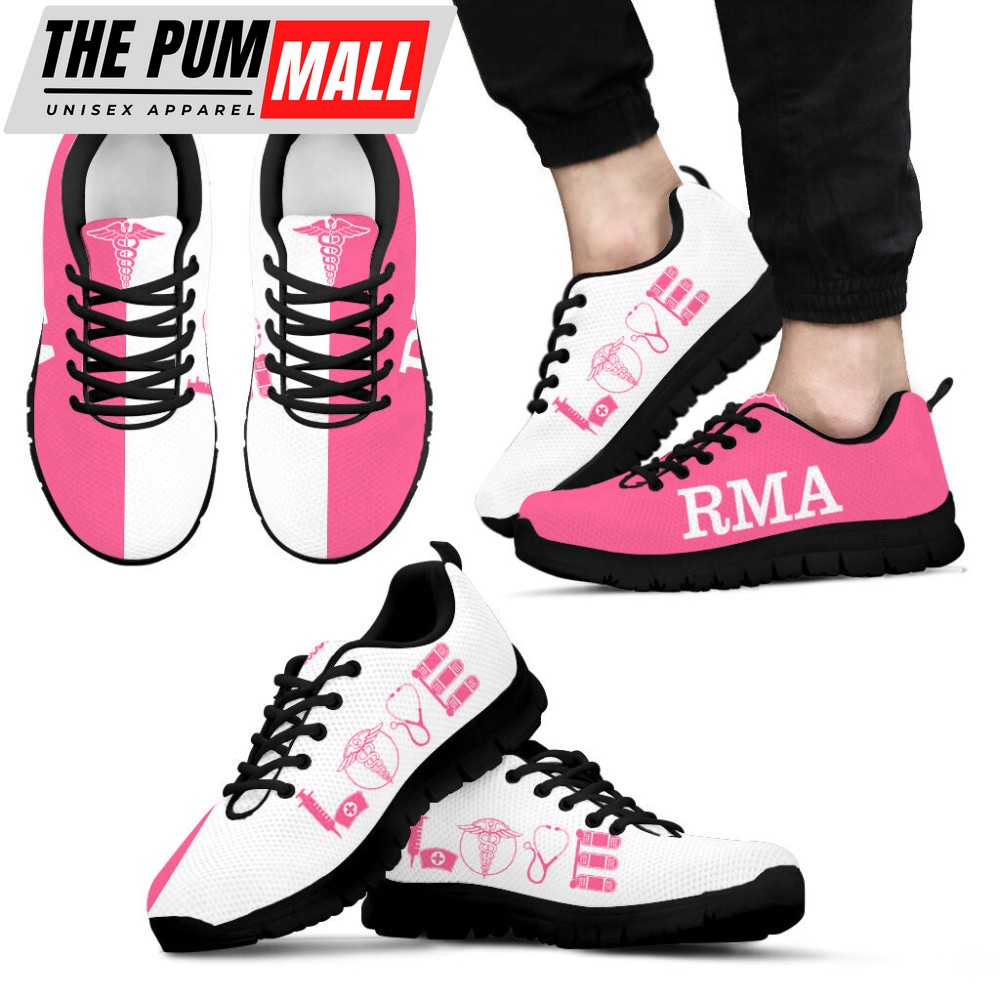 Nurse Love Pink White Shoes, Nursing Fashion Sneakers For Men And Women