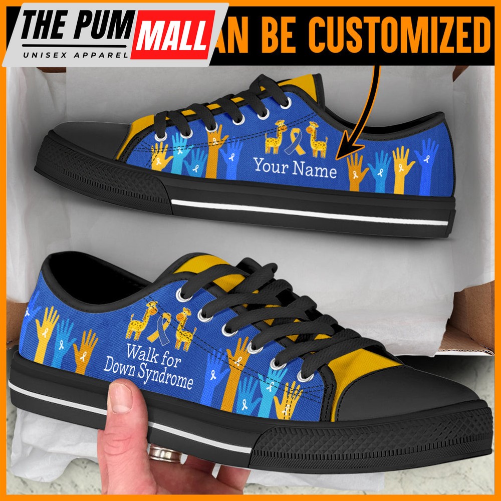 Personalized Down Syndrome Ribbon Giraffe Raise Hand Low Top Sneaker – Sneaker For Dog Walking – Best Shoes For Men And Women