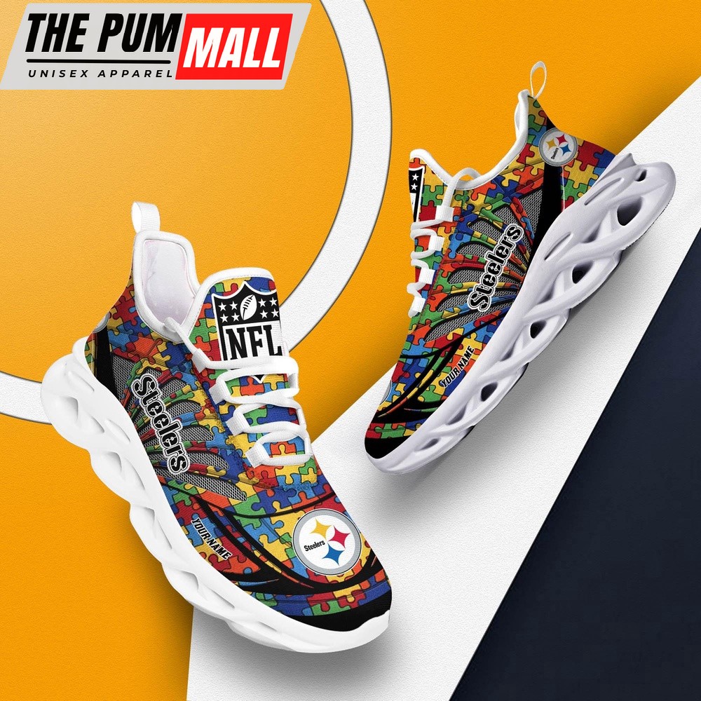 Personalized NFL Pittsburgh Steelers Autism Awareness Max Soul Shoes Sneaker