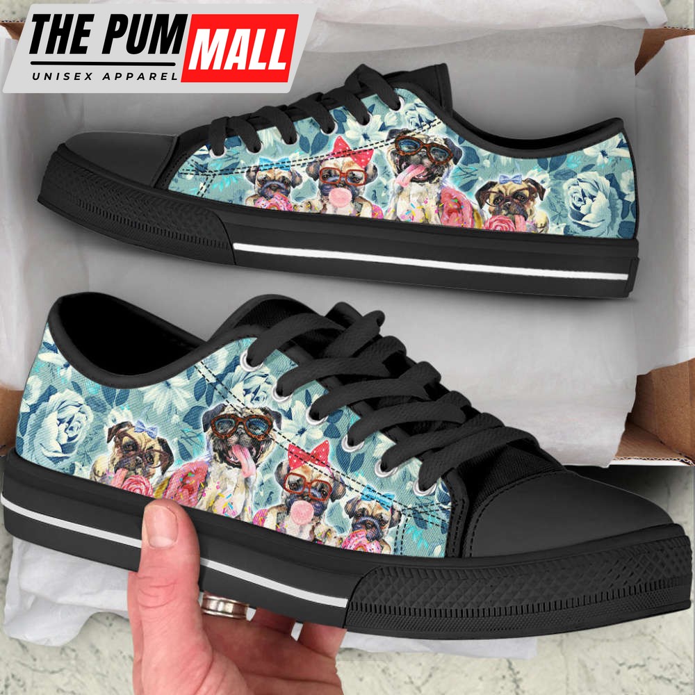 Pug Dog Flowers Low Top Shoes Canvas Sneakers Casual Shoes