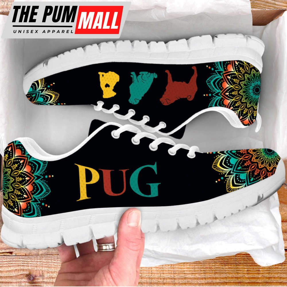 Pug Dog Lover Shoes Geometric Mandala Art Sneakers Walking Running Lightweight Casual Shoes For Pet Lover