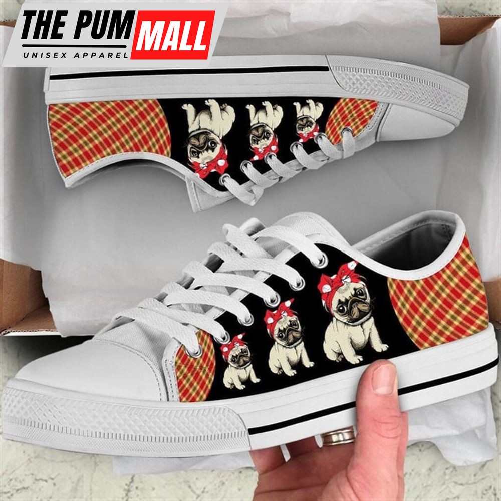 Pug Dog Red Black Tan Plaid Canvas Low Top Shoes – Low Top Shoes Mens, Women