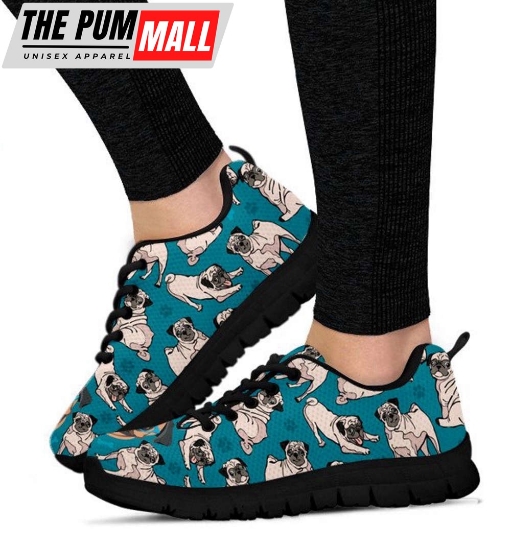 Pug Life Womens Sneakers Black Sole Running Custom Gifts Pet Dog Lovers