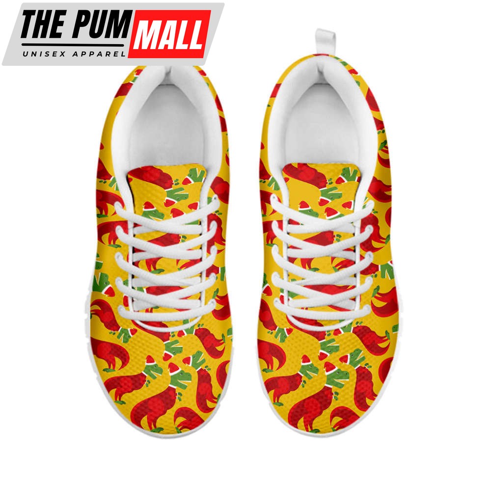 Santa Claus T-Rex Christmas Dino Print White Running Shoes, Gift For Men And Women