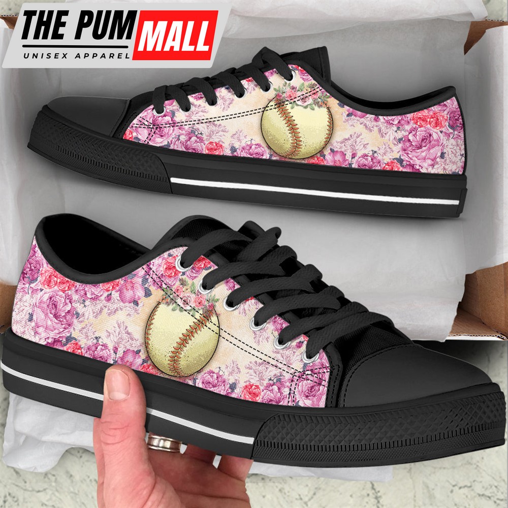 Softball And Rose Flower Low Top Shoes – Canvas Print Lowtop Casual Shoes Gift For Adults – Sneaker For Walking