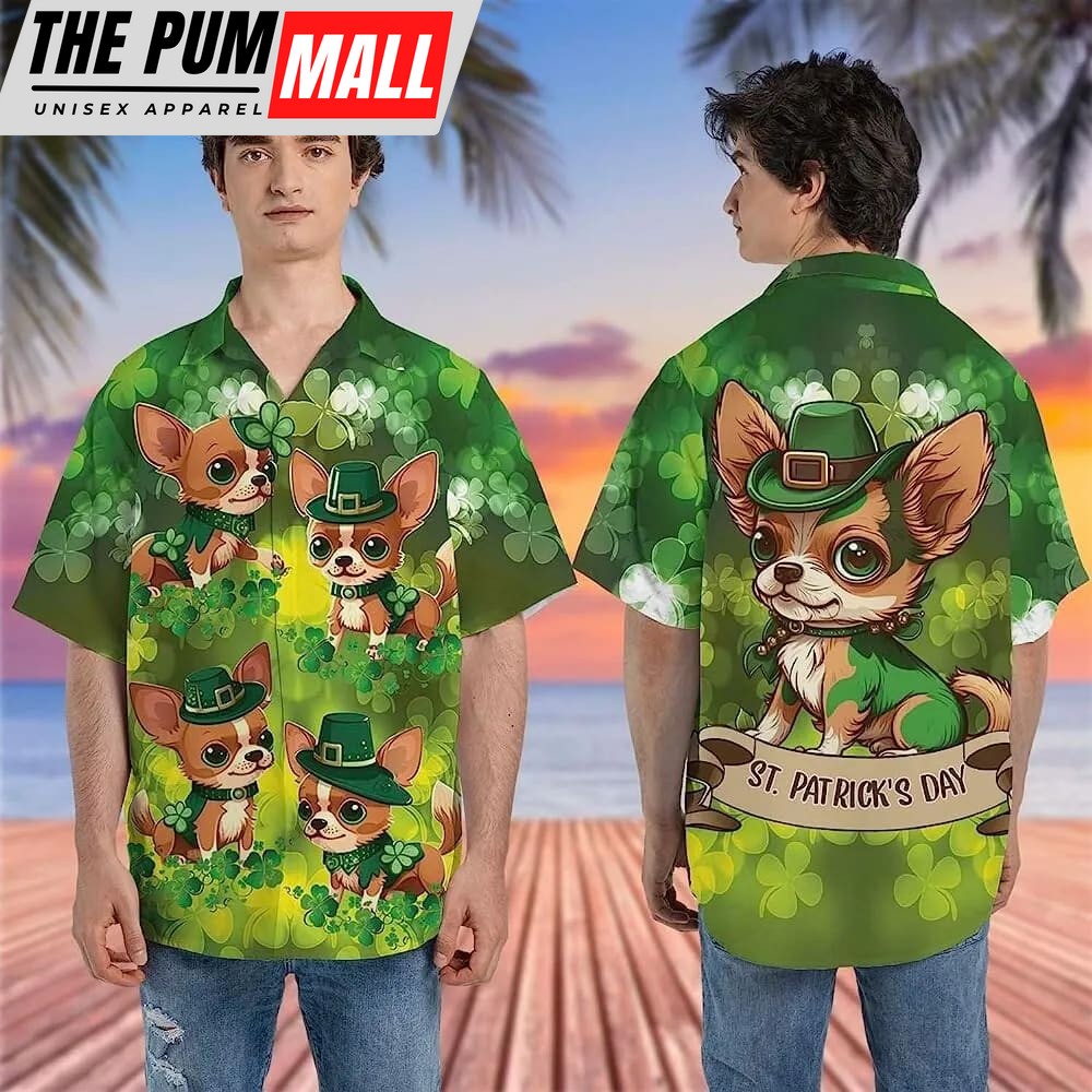 St Patricks Day Hawaiian Shirt, Chihuahua Dog Patrick Shamrock Hawaiian Shirt, Patrick Day Aloha Shirt
