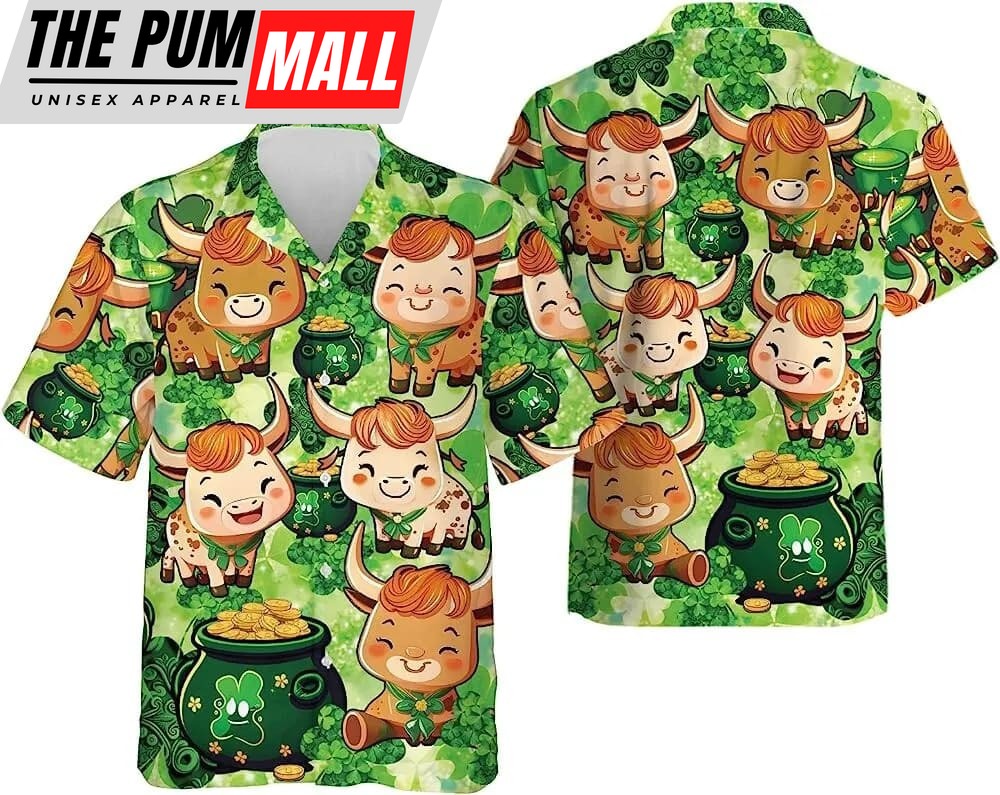 St Patricks Day Hawaiian Shirt, Cute Cow Patrick Day Shirt, Irish Cow Hawaiian Shirt For Men Women