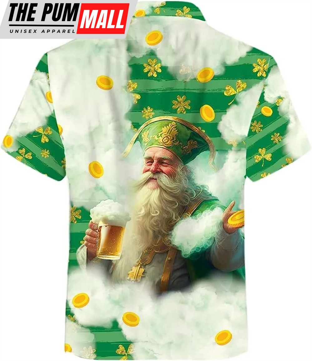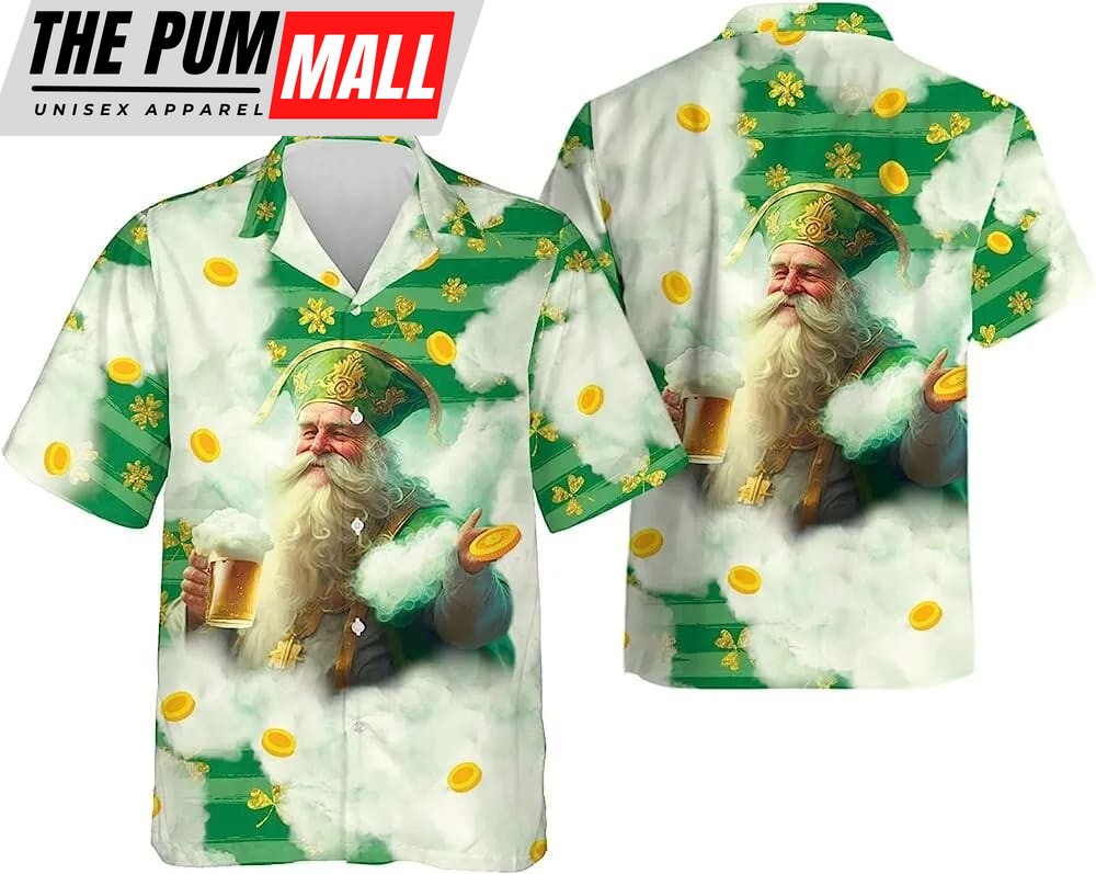 St Patricks Day Hawaiian Shirt, Funny Saint Patrick Drinking Beer Hawaiian Shirtcasual Button Down Summer Beach Shirt