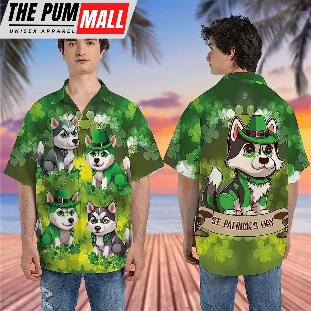 St Patricks Day Hawaiian Shirt, Husky Dog Patrick Day Shirt, Dog Hawaiian Shirt, St. Patrick’s Day Shirt