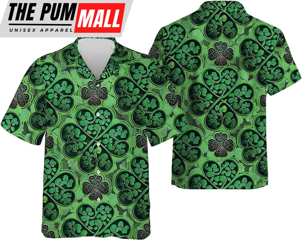 St Patricks Day Hawaiian Shirt, Irish Patrick Shamrock Hawaiian Shirt For Men Women, Short Sleeve Button Down Hawaiian Shirt