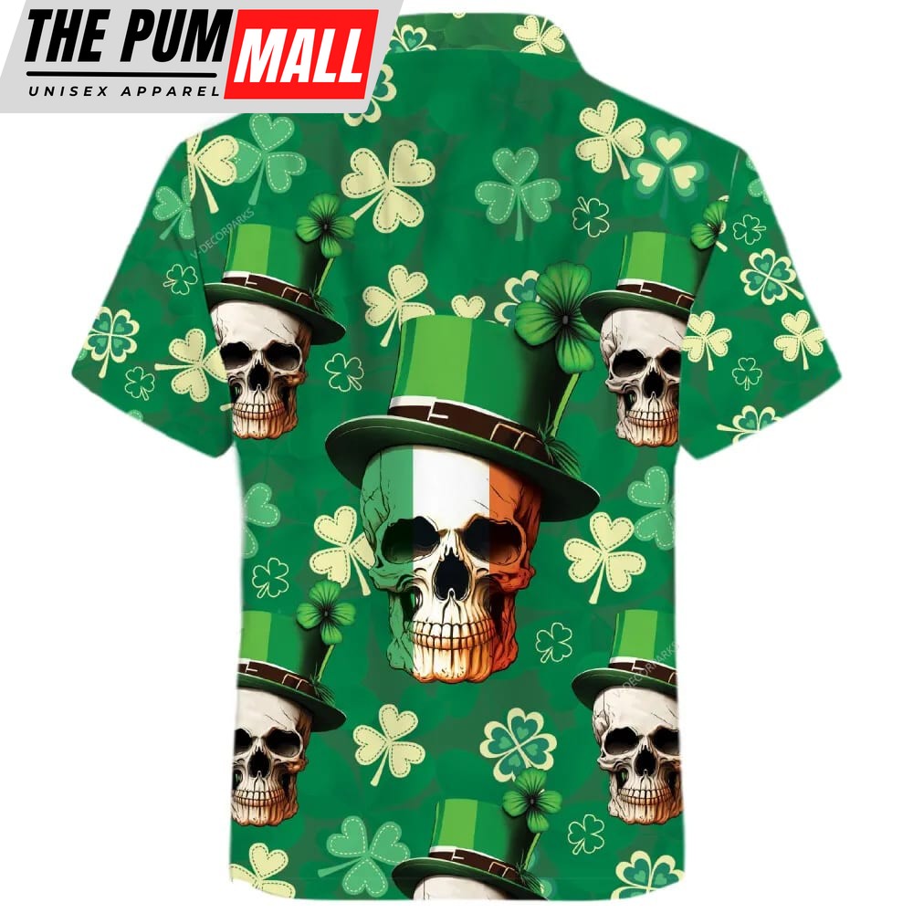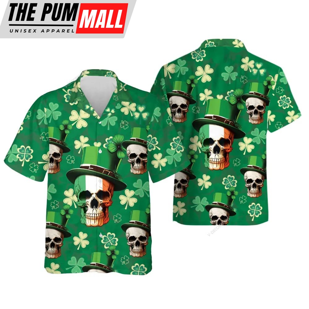 St Patricks Day Hawaiian Shirt, Irish Skull And Shamrock Unique Hawaiian Shirt