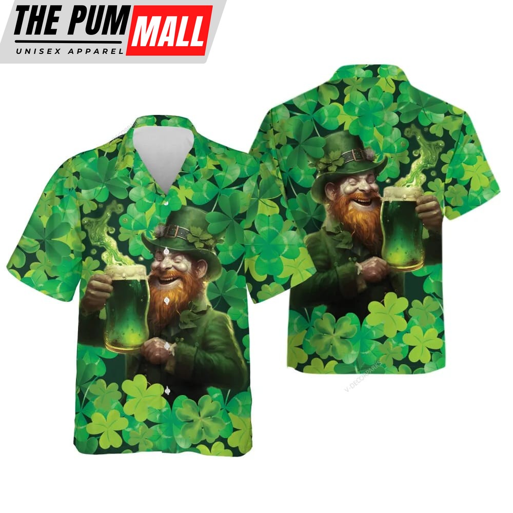 St Patricks Day Hawaiian Shirt, Leprechaun Beer For Saint Patrick Holiday Unisex Hawaiian Shirts