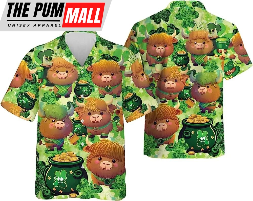 St Patricks Day Hawaiian Shirt, Patrick Cow And Shamrock Hawaiian Shirt For Men Women, Irish Mens Button Down Shirt