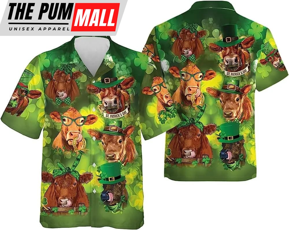 St Patricks Day Hawaiian Shirt, Patrick Cow Tropical Beach Shirt For Men Women, St. Patrick’s Day Hawaiian Shirt