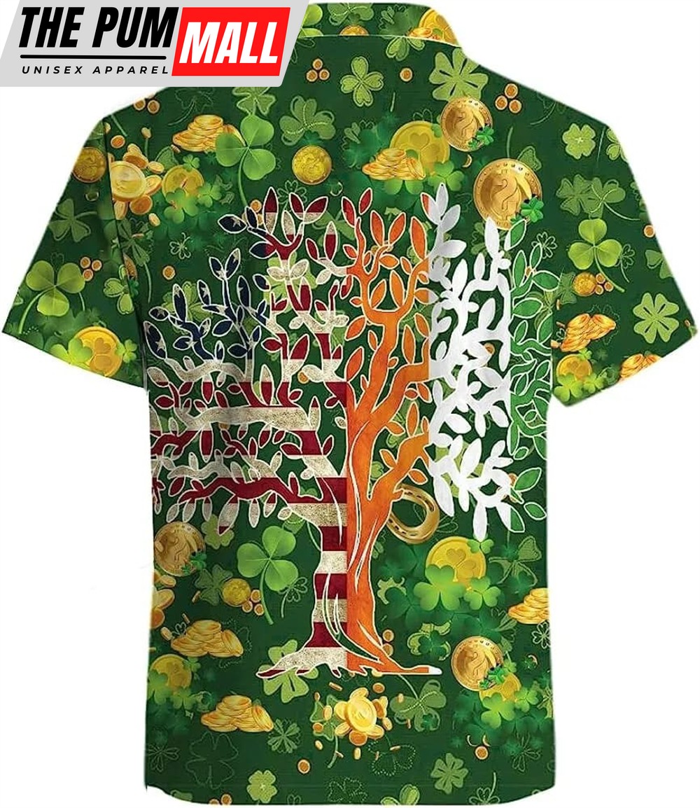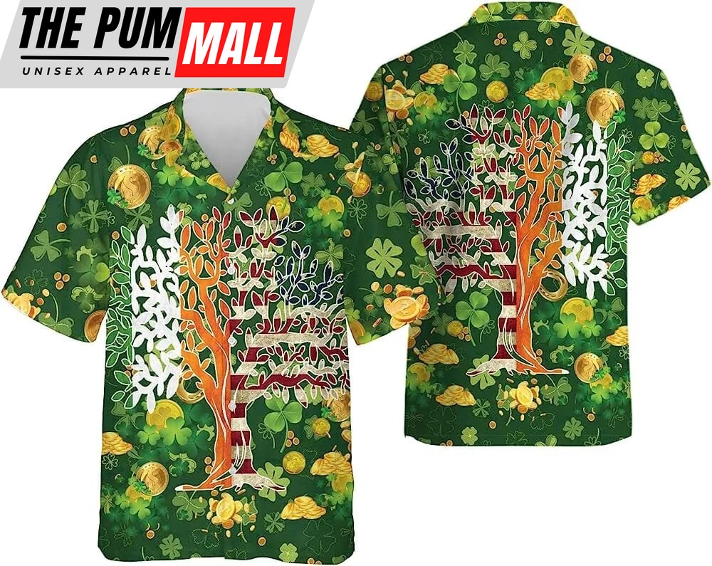 St Patricks Day Hawaiian Shirt, Shamrock Tree Of Life Hawaiian Shirt, Ireland And American Flag Shirt