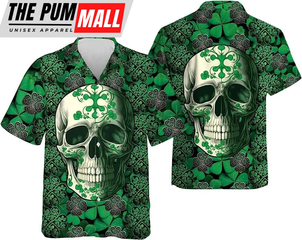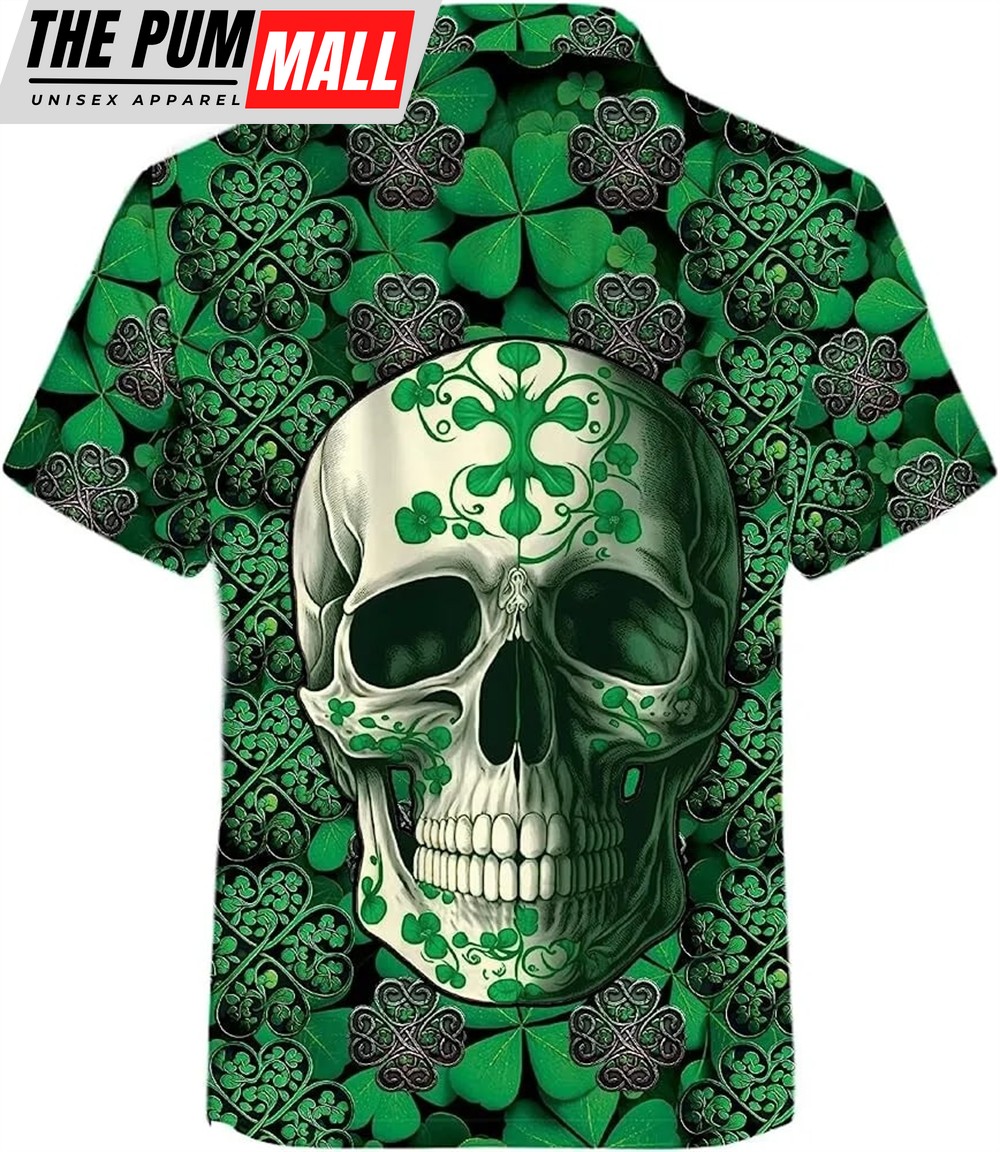 St Patricks Day Hawaiian Shirt, Skull Shamrock Summer Men Hawaiian Shirt, Casual Printed Beach Summer Shirt