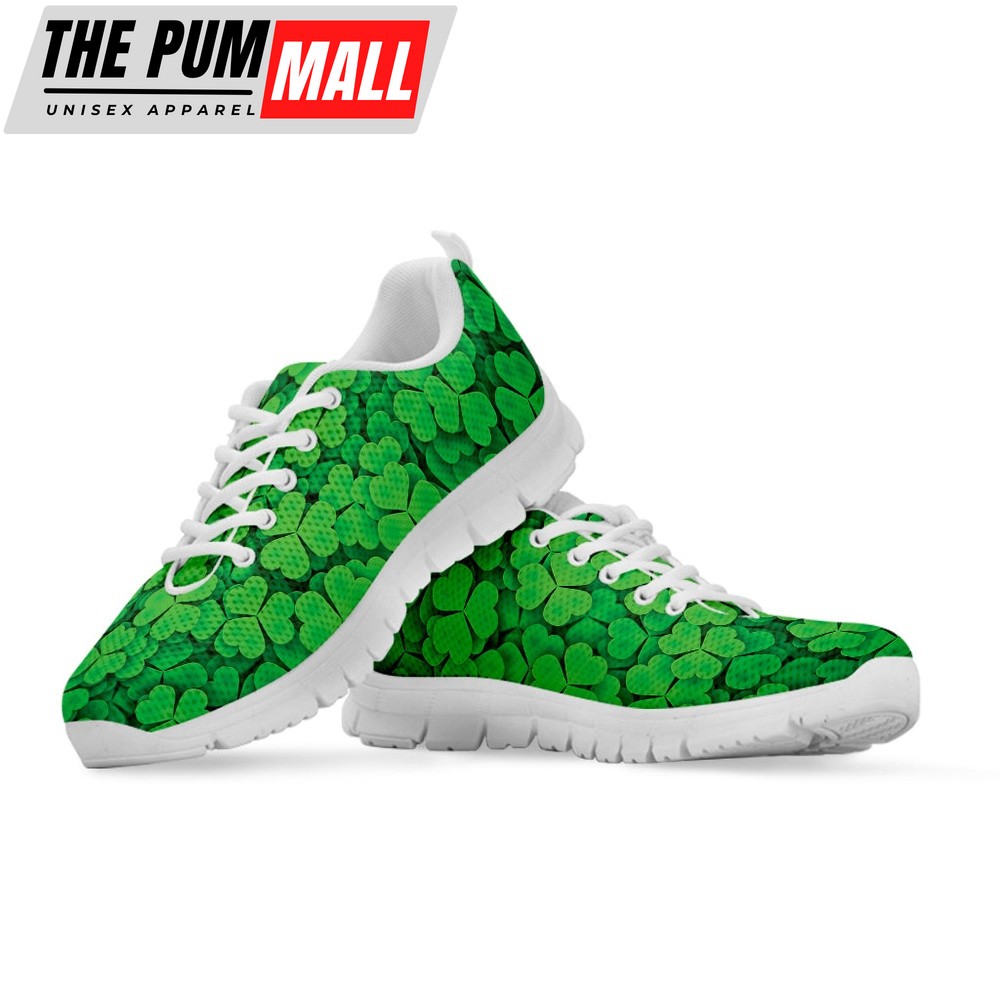 St Patrick’s Day Shoes, Green Clover St. Patrick’s Day Print White Running Shoes, St Patrick’s Day Sneakers