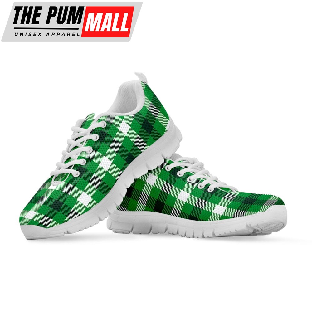 St Patrick’s Day Shoes, Irish Check Saint Patrick’s Day Print White Running Shoes, St Patrick’s Day Sneakers