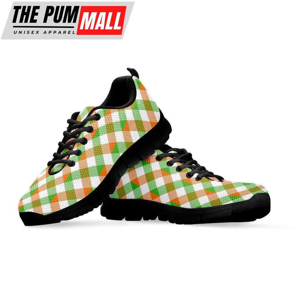 St Patrick’s Day Shoes, Irish Plaid Saint Patrick’s Day Print Black Running Shoes, St Patrick’s Day Sneakers