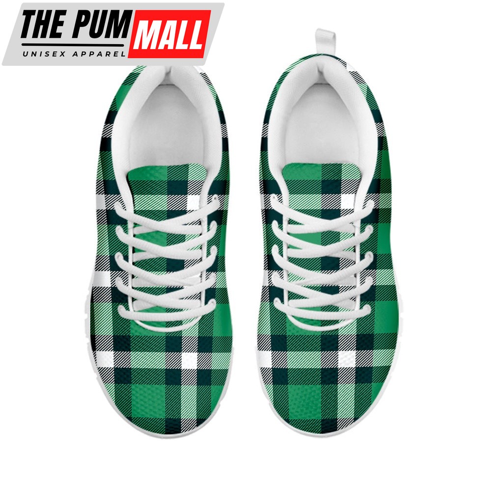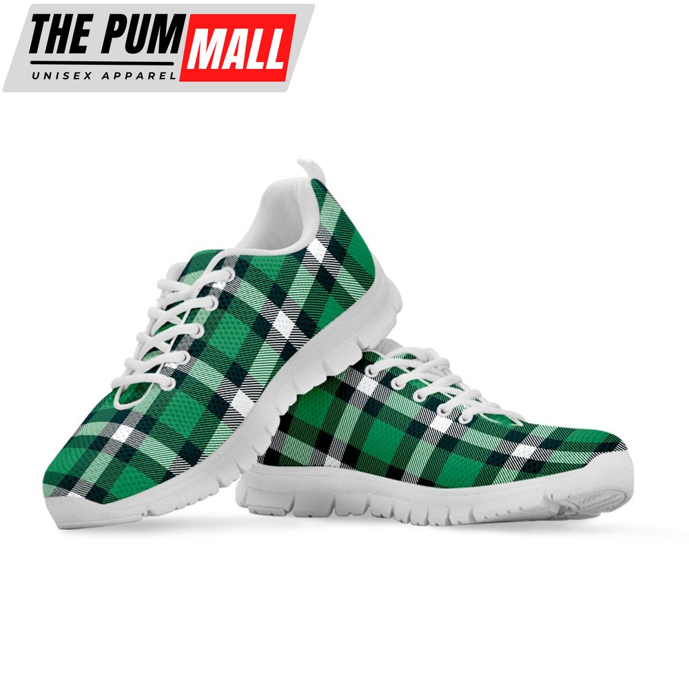 St Patrick’s Day Shoes, Irish St. Patrick’s Day Plaid Print White Running Shoes, St Patrick’s Day Sneakers