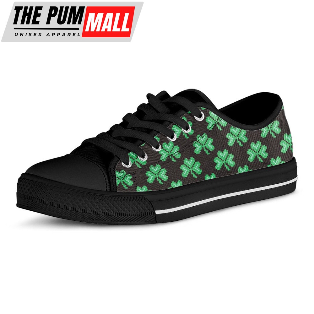 St Patrick’s Day Shoes, Pixel Clover St. Patrick’s Day Print Black Low Top Shoes, St Patrick’s Day Sneakers
