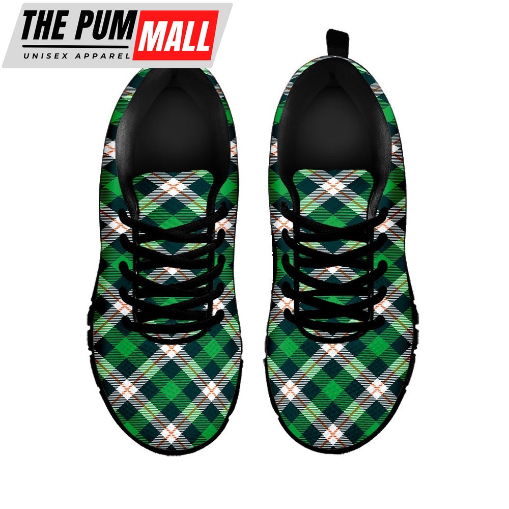St Patrick’s Day Shoes, Saint Patrick’s Day Irish Tartan Print Black Running Shoes, St Patrick’s Day Sneakers