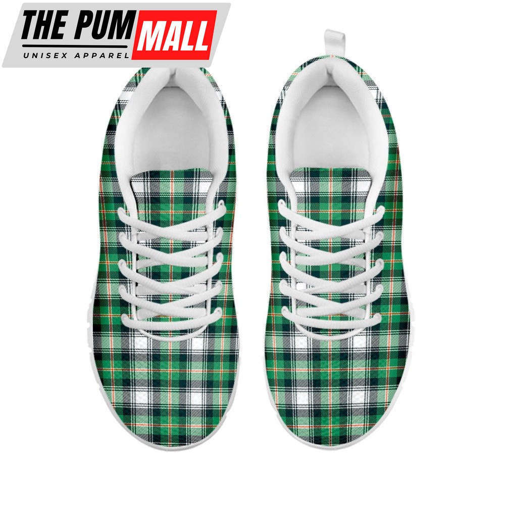 St Patrick’s Day Shoes, Saint Patrick’s Day Tartan Pattern Print White Running Shoes, St Patrick’s Day Sneakers