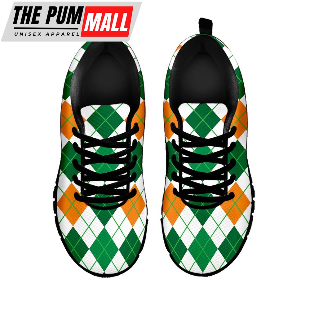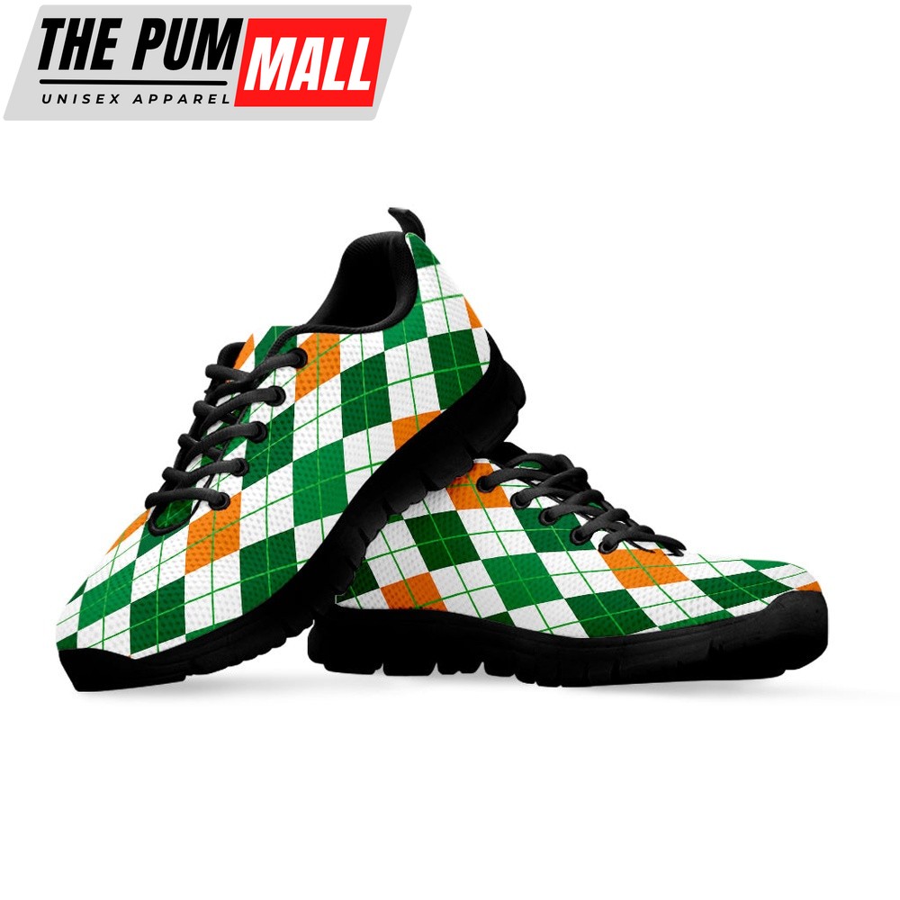 St Patrick’s Day Shoes, St Patrick’s Day Argyle Pattern Print Black Running Shoes, St Patrick’s Day Sneakers