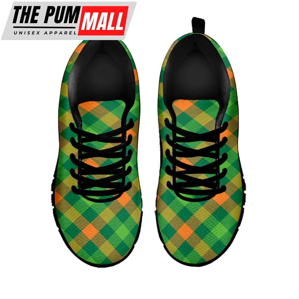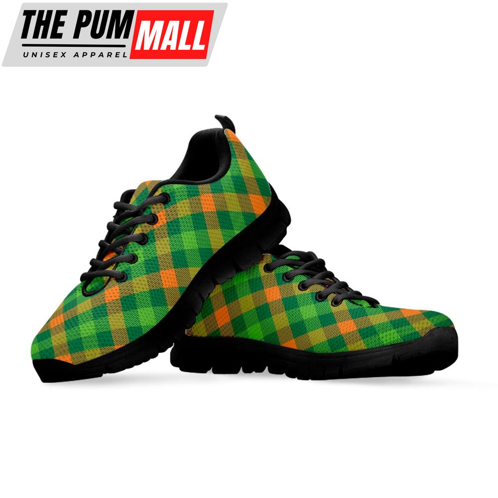 St Patrick’s Day Shoes, St. Patrick’s Day Buffalo Pattern Print Black Running Shoes, St Patrick’s Day Sneakers