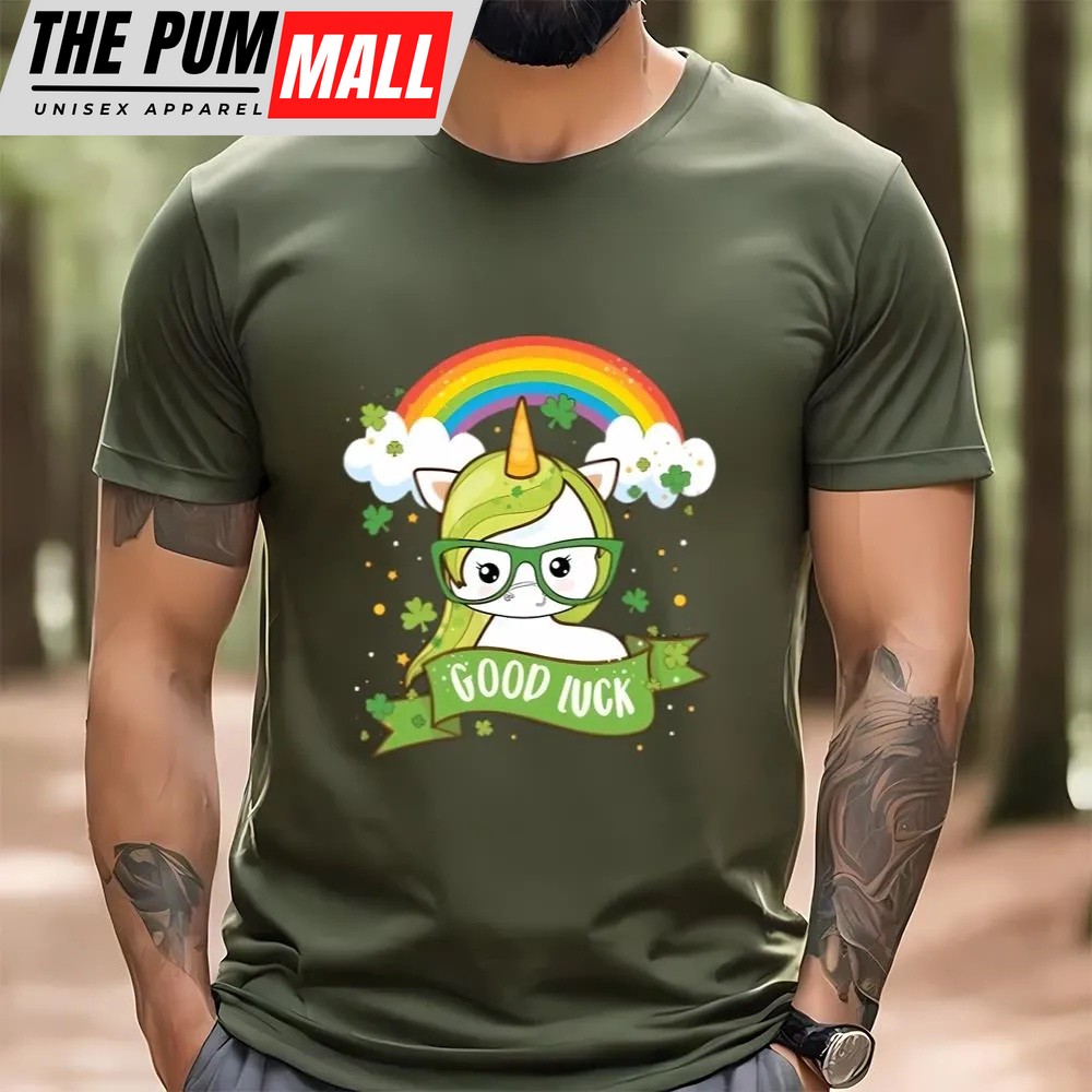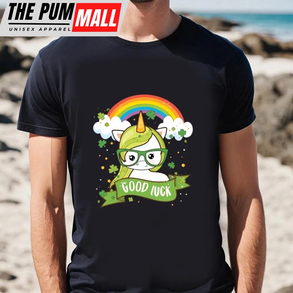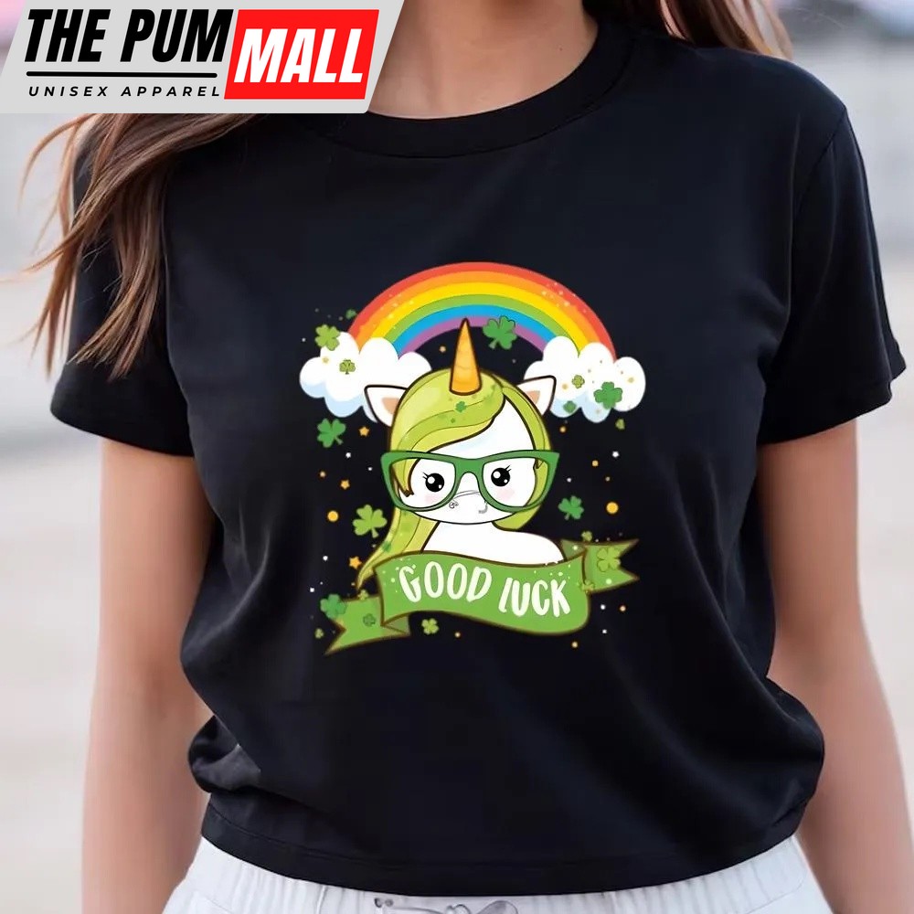 St Patricks Day T Shirt, Kawaii Good Luck Rainbow St Patricks Day Unicorn T-Shirt, Funny St Patricks Day Shirts
