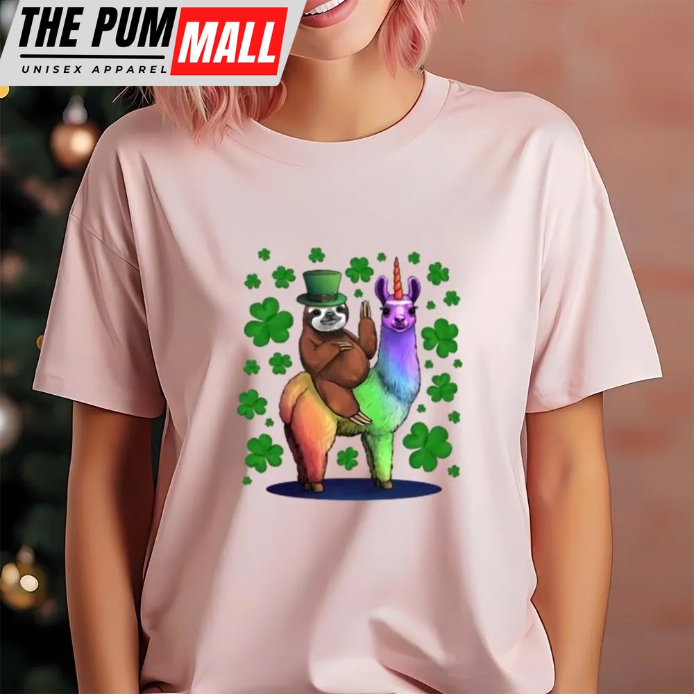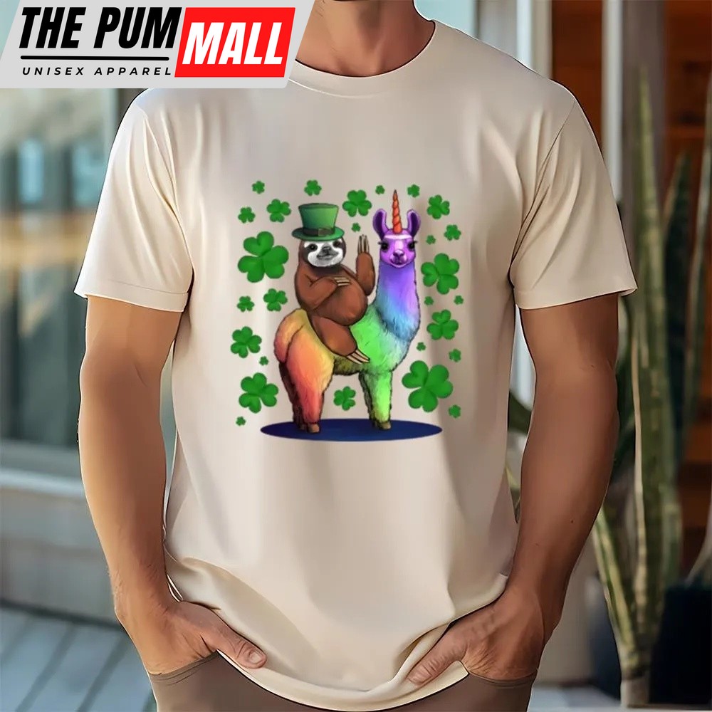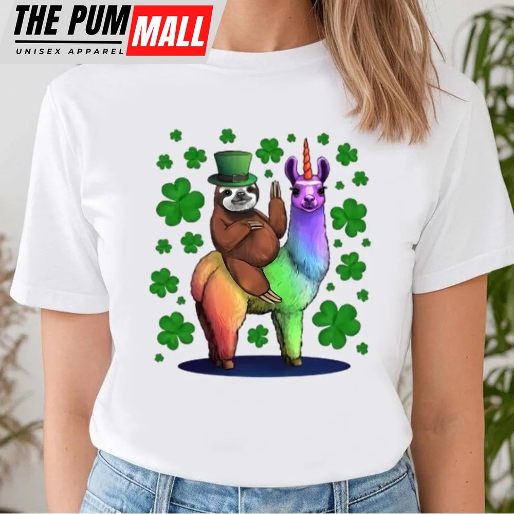 St Patricks Day T Shirt, Leprechaun Sloth Riding Llama Unicorn St Patricks Day T-Shirt, Funny St Patricks Day Shirts