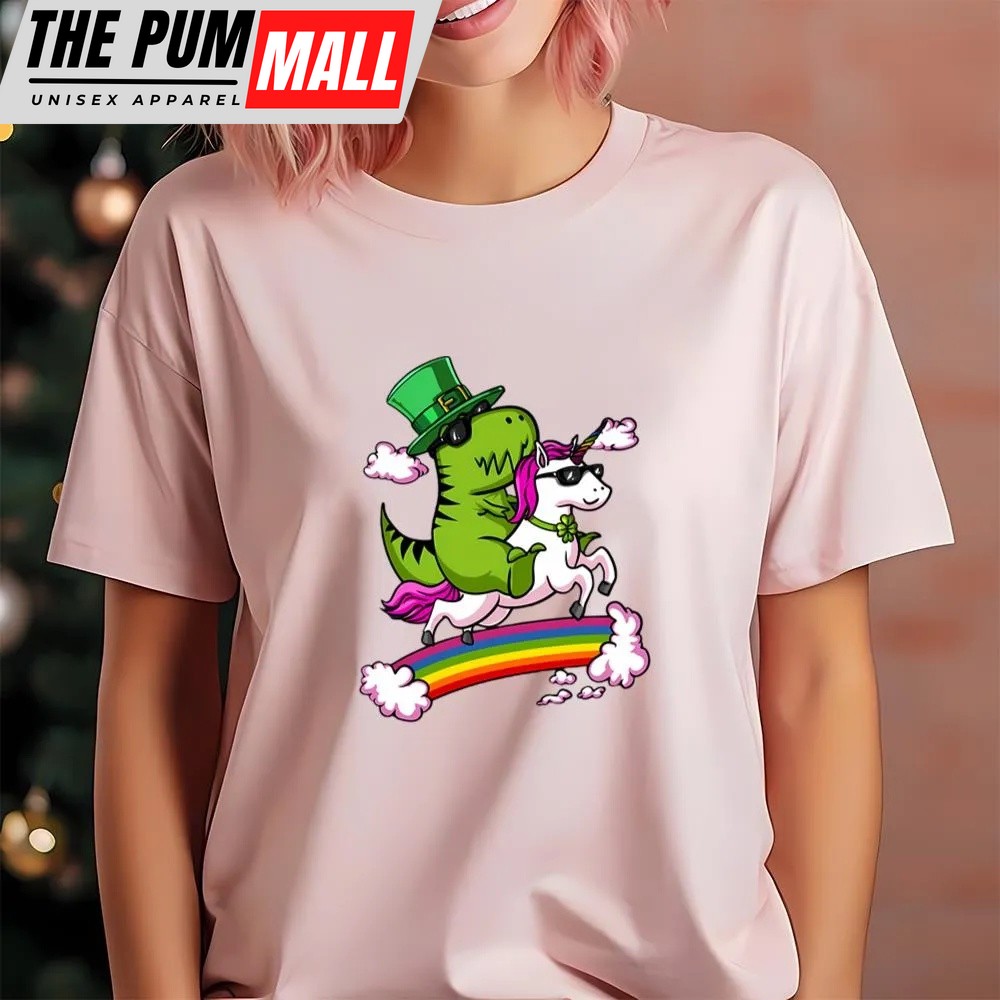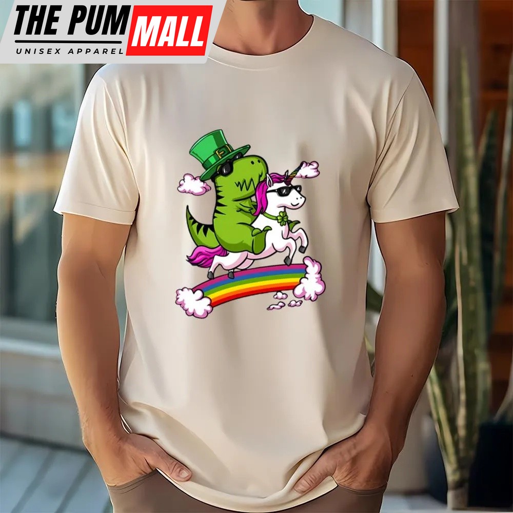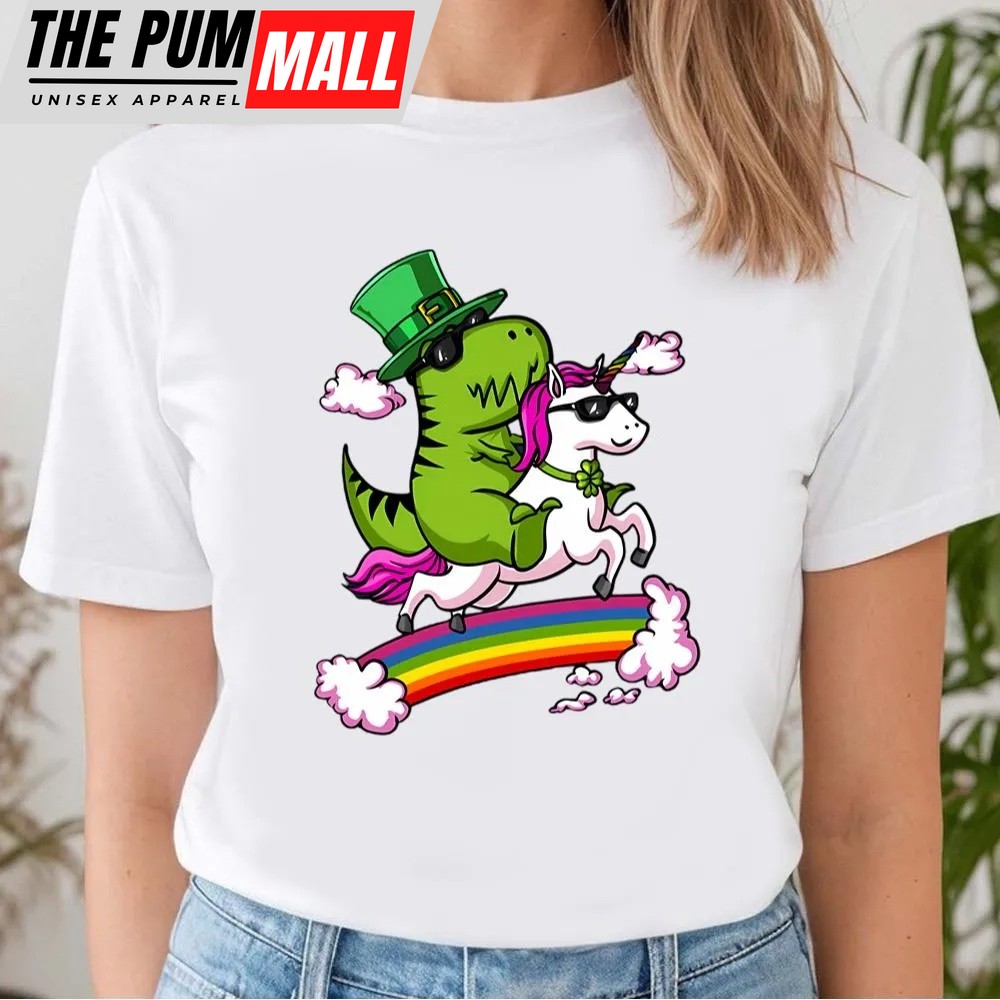 St Patricks Day T Shirt, Leprechaun T-Rex Dinosaur Riding Unicorn St Patricks Day Irish T-Shirt, Funny St Patricks Day Shirts