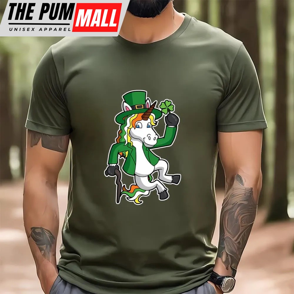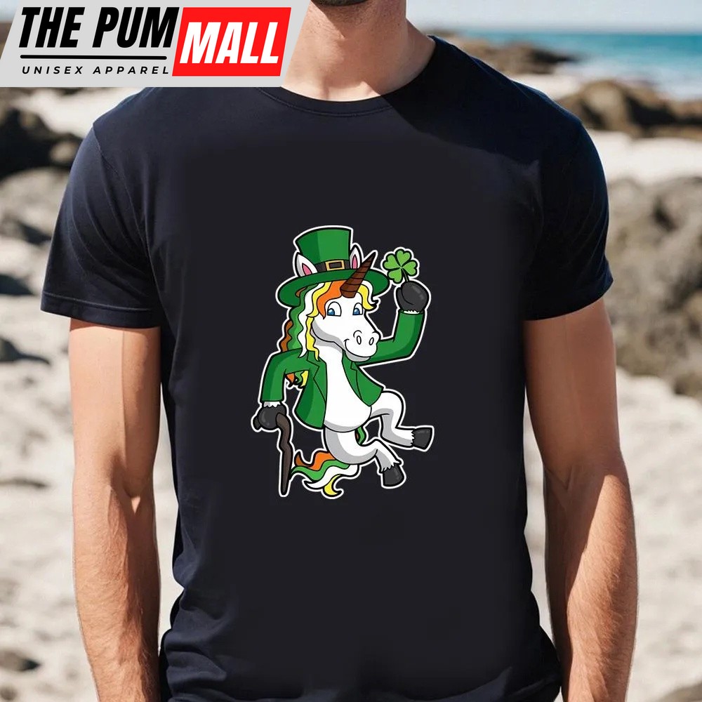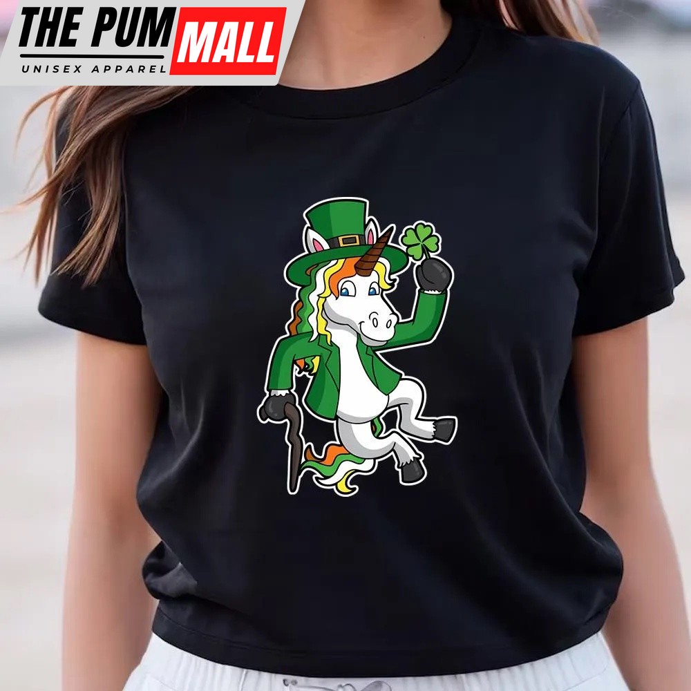 St Patricks Day T Shirt, Lucky Irish Unicorn Leprechaun St Patrick’s Day Heel Click T-Shirt, Funny St Patricks Day Shirts