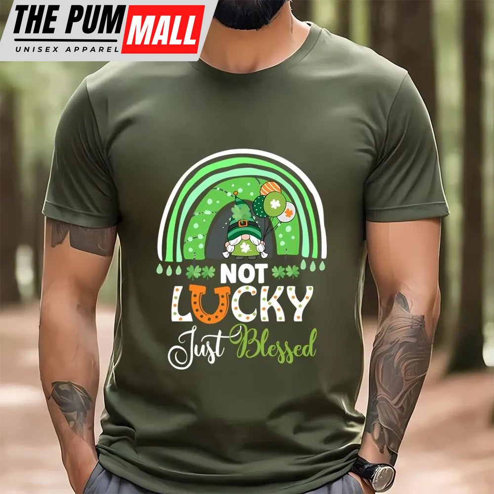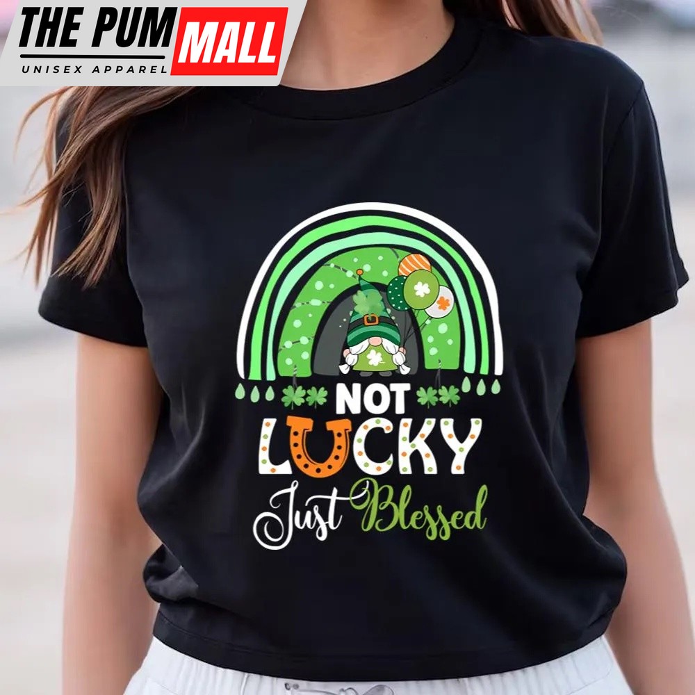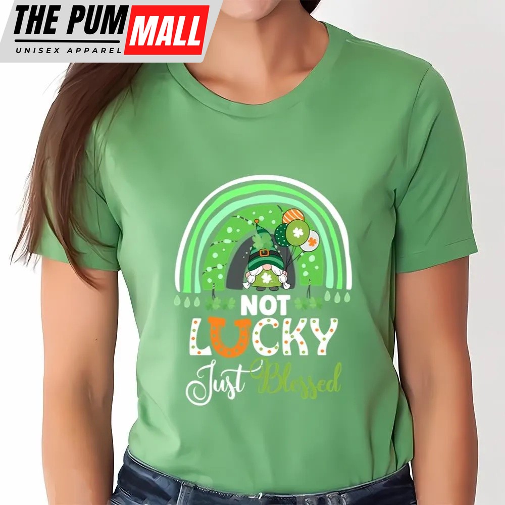 St Patricks Day T Shirt, Not Lucky Just Blessed Rainbow Gnome Clover St Patrick’s Day T-Shirt, Funny St Patricks Day Shirts